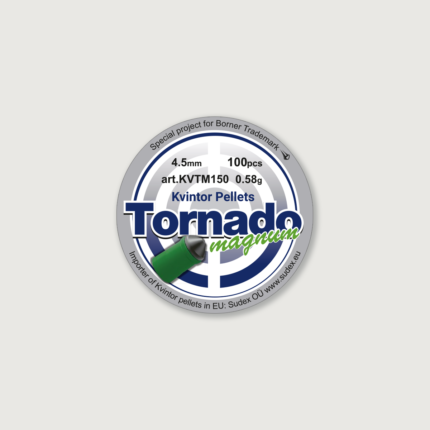 Tornado Magnum are weighted bullets weighing 0.78 g. They consist of a lead core with a chewing head and a plastic container-obturator. The center of gravity shifted forward and the plastic shank stabilize the bullet in flight and increase accuracy.