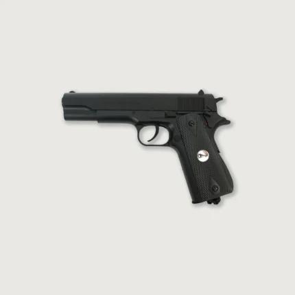 This air pistol has been inspired by the legendary Colt 1911. It has a smoothbore barrel designed to shoot steel BBs in .177 caliber (4,5 mm). The pistol is really lightweight thanks to its polymer frame. The inner parts are made of metal for increased durability.