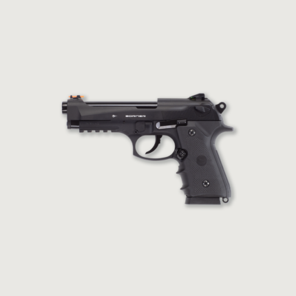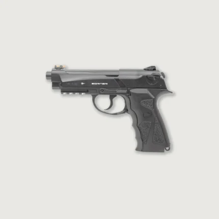This air pistol is a replica of the Beretta 90TWO. It has a smoothbore barrel designed to shoot steel BBs in .177 caliber (4,5 mm). The frame of the Borner Sport 331 pistol is made of plastic, while the slide and the outer surface of the barrel are made of metal. Thanks to the Blowback system, when fired, the bolt is thrown back and the hammer is cocked.