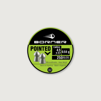 Medium range Borner Pointed bullets. Also suitable for use in weapons with low power. The aerodynamic design of the Diabolo’s round head ensures good accuracy, accuracy and high penetration.