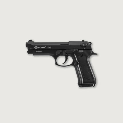 Blow F92 is a blank replica of the Italian Beretta 92. The metal frame is outfitted with checkered polymer grips for safer handling.