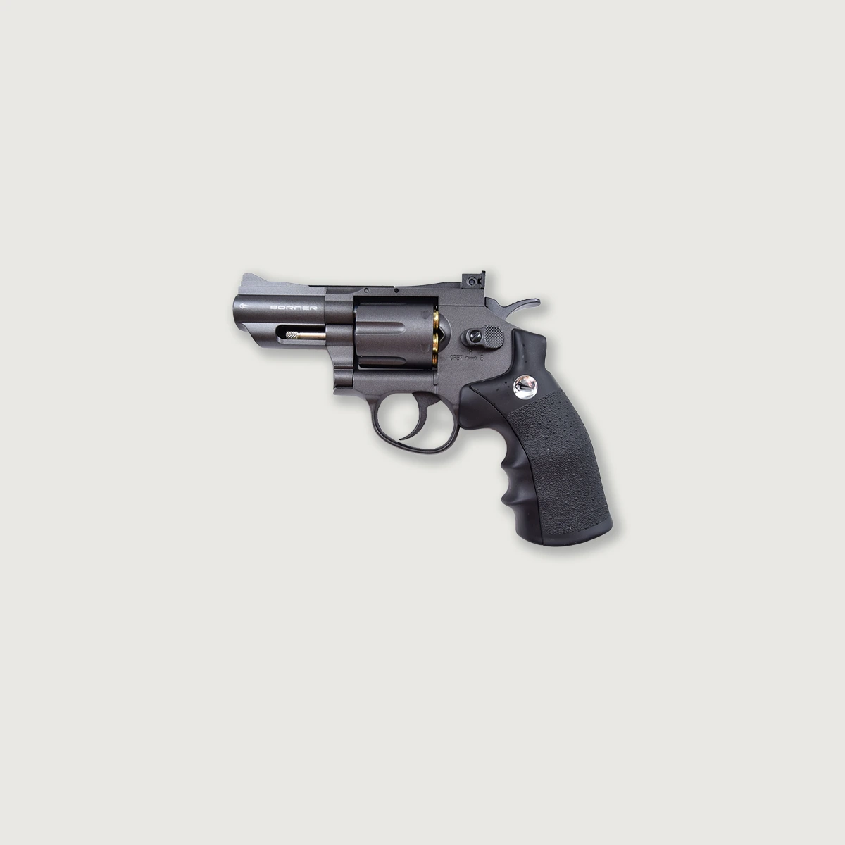 The Borner W3000 has a smoothbore barrel and is designed to shoot steel BBs in .177 caliber (4,5 mm). The polymer frame is really lightweight and the inner parts are made of metal for increased durability. The polymer grips have an anti-slip surface.