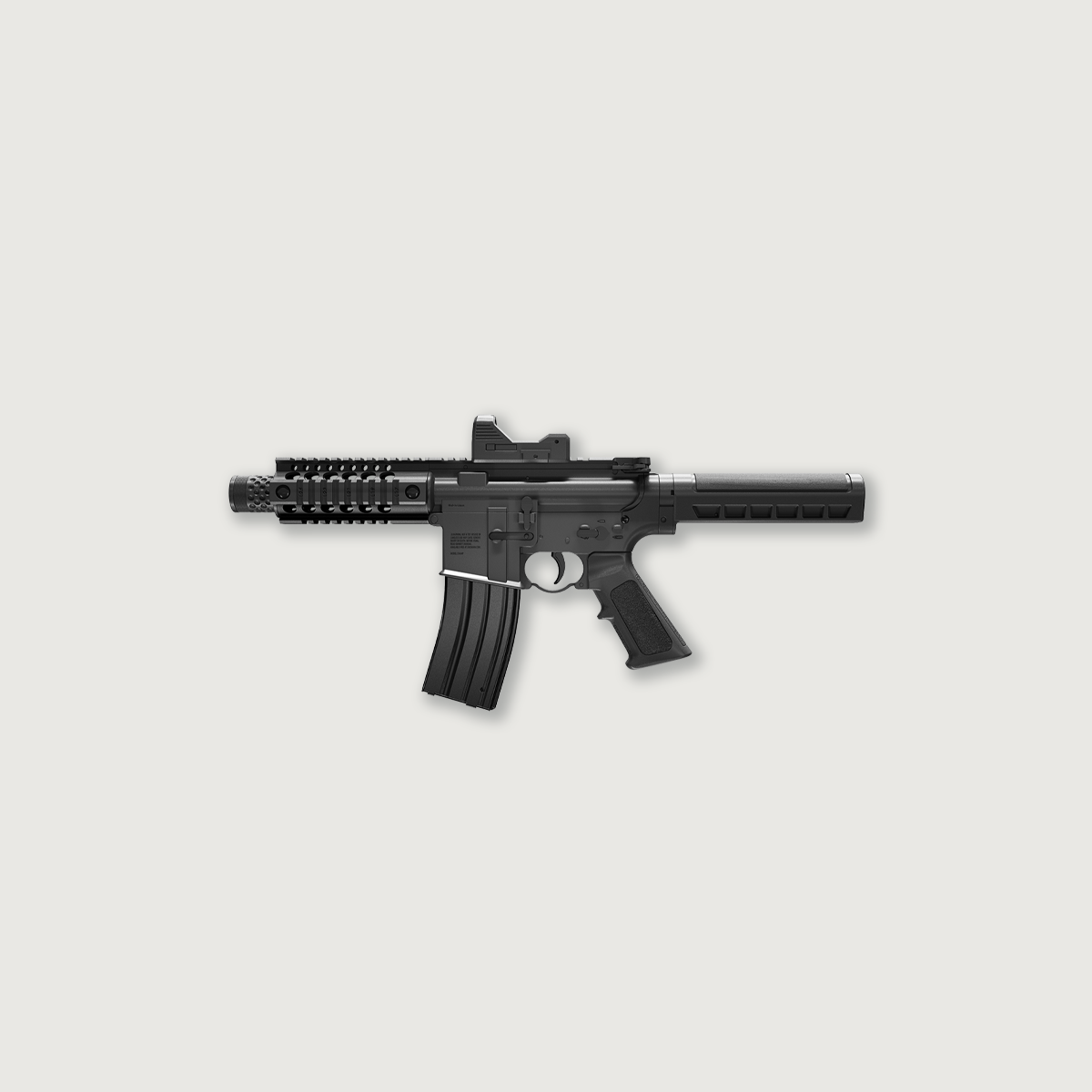 The Crosman Full Auto A4-P BB air pistol redefines recreational backyard fun. Fueled by two 12-gram CO₂ cartridges housed in the 25-round magazine, these air pistols sling BBs at a blistering 400 fps with an intense 1400 round per minute rate of fire. The dual action selector lets you choose between semi and full auto capability and features a quad accessory rail and removable red dot sight. This pistol has it all, get ready to experience the fun that only a full auto BB gun can provide.