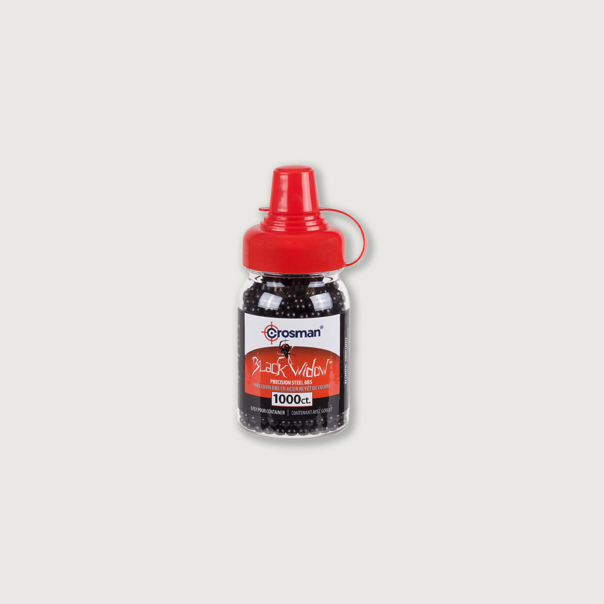 Crosman Black Widow black-coated steel BBs are designed for use in any .177/4.5 mm caliber air BB pistol or air BB rifle. The 1000-count EZ-pour bottle makes refilling a snap. Great for plinking and paper range targets to practice safe handling skills.