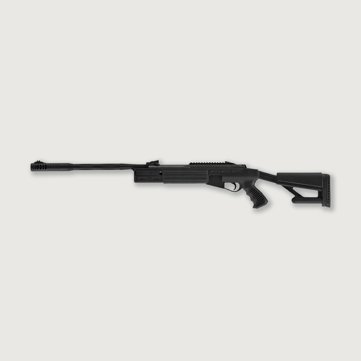 - Ambidextrous, all weather, tactical style pistol grip synthetic stock