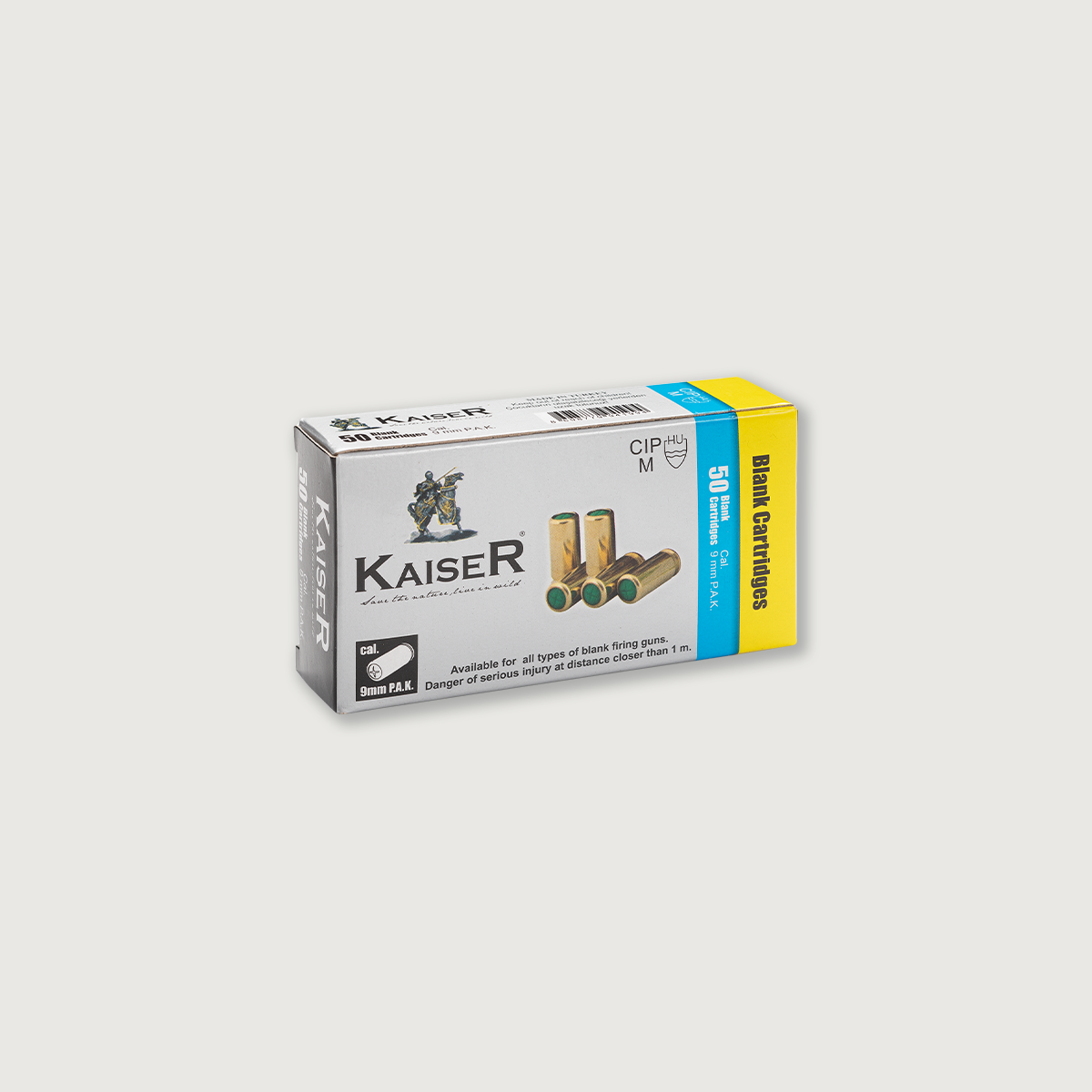 Blank Cartridges Kaiser 9 mm P.A.K. steel case brass plated /50 pcs