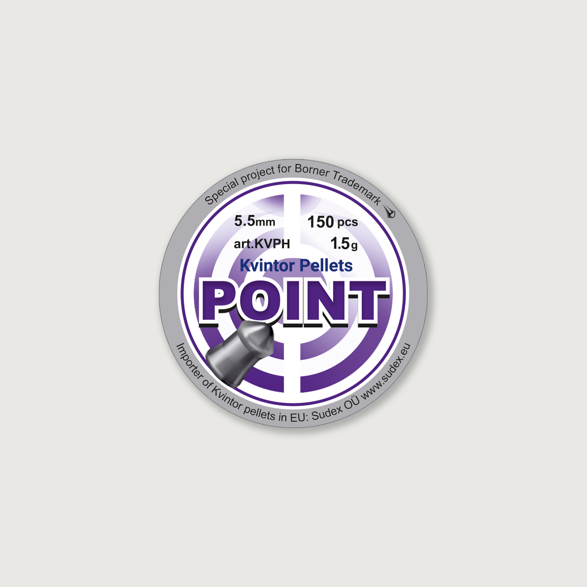 The pointed head of the bullet creates maximum penetration when used in powerful types of weapons. Well suited for hunting and target shooting both at medium and long distances. The original shape of the Kvintor Point and the weight of 1.5 g ensure high bullet flight stability.