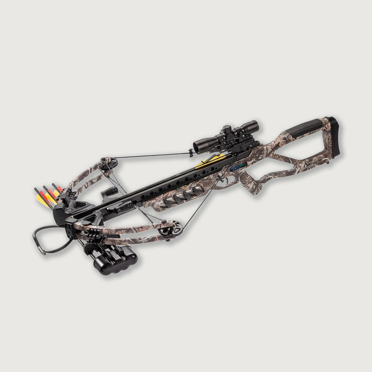 The picatiny rail can also accommodate added accessories such as bipods and torches. 20" Carbon bolt recommended.