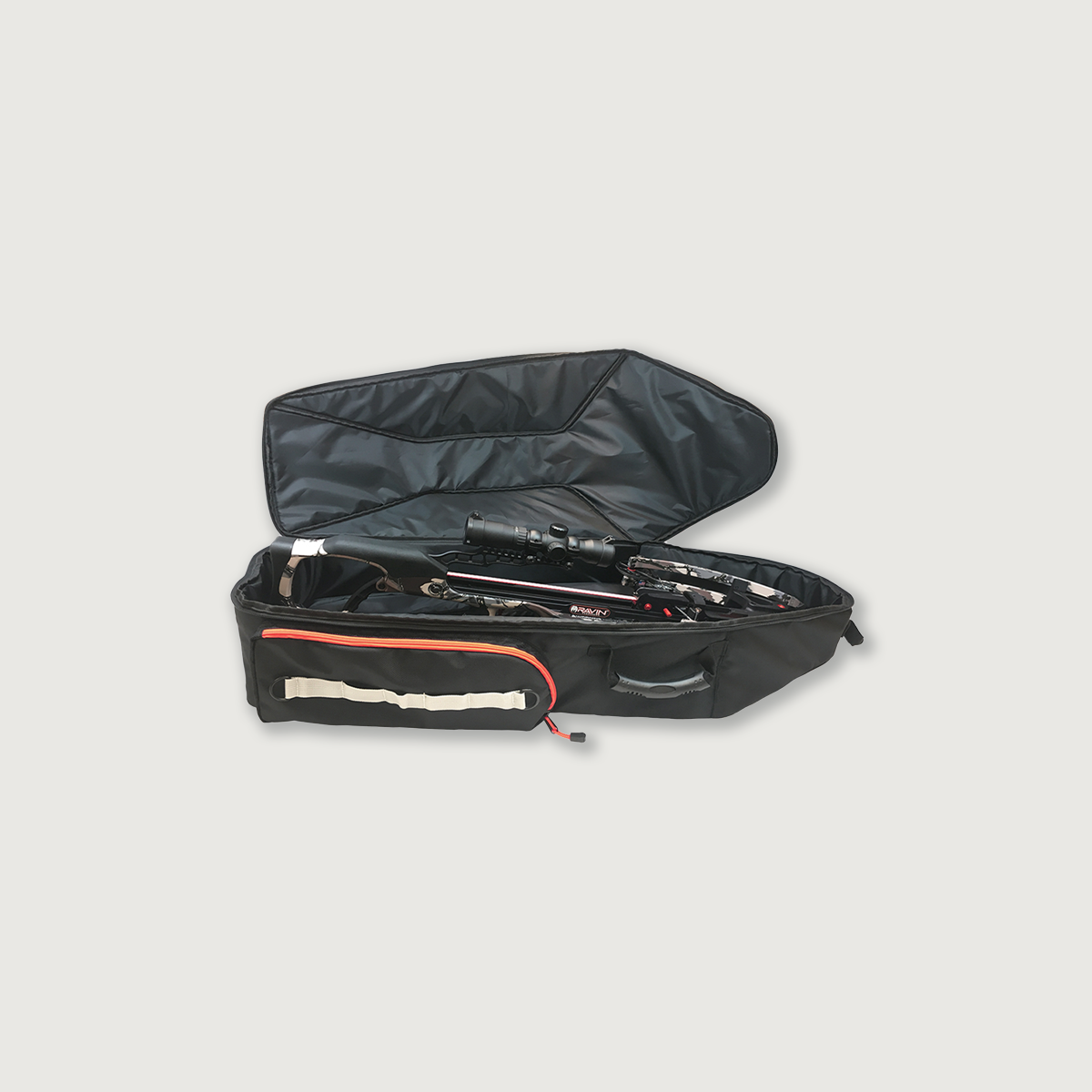 The Ravin Soft Case is a beautiful, slim and elegant design. This heavy duty black padded case is designed primarily to protect your Ravin crossbow from damage. It conveniently stores a fully assembled Ravin crossbow with mounted scope, quiver and bolts for quick and easy use.