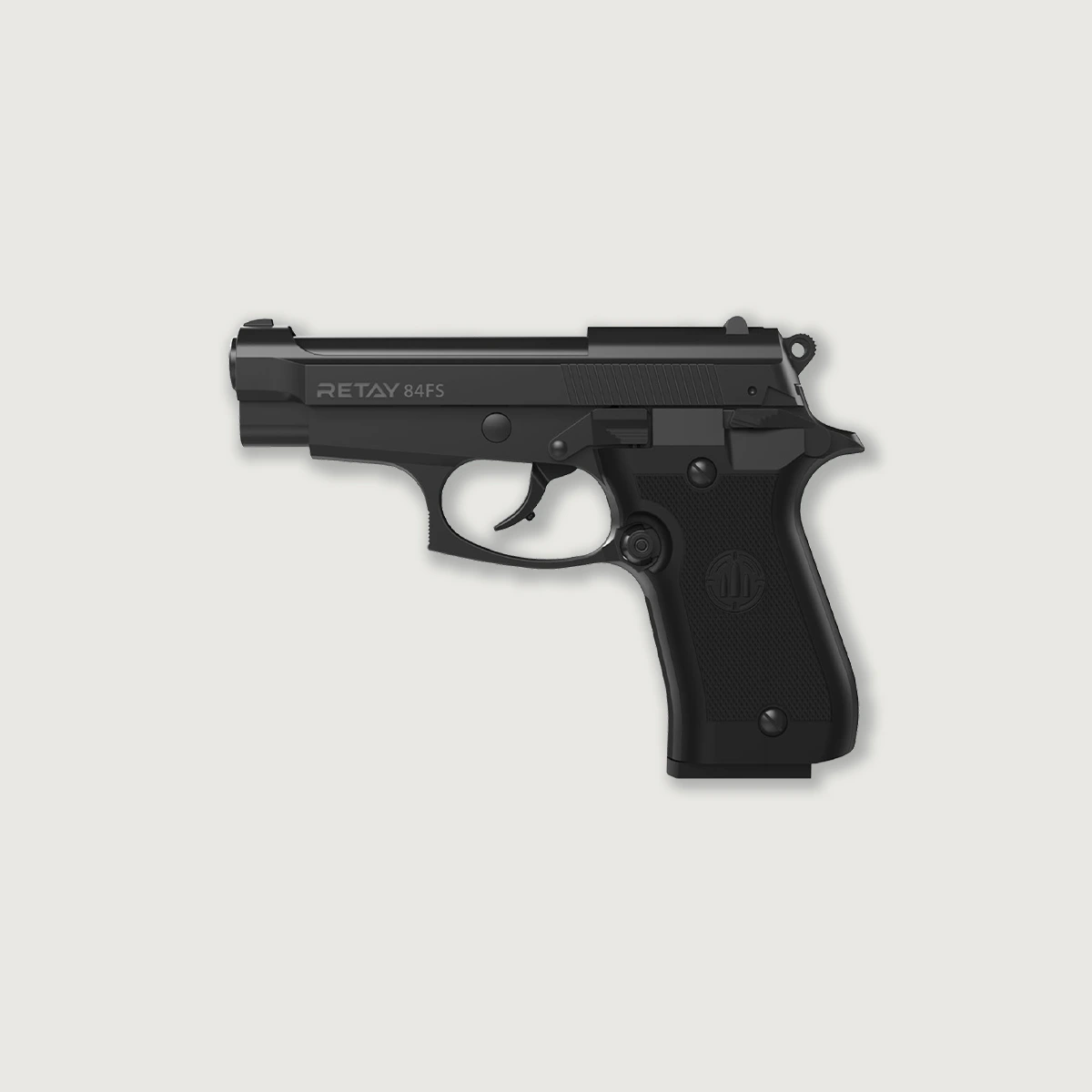 The Retay 84FS Blank Pistol Gun from Retay Arms offers a medium-sized, semi-automatic, double-action blank pistol. This is a medium size frame with a smooth glide and realistic weight and feel.