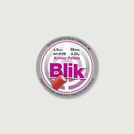 Kvintor Flash is the only bullet of its kind in 5.5 mm caliber with a pyrotechnic effect. When a Kvintor Flash bullet hits a hard target, there is a loud bang with a bright flash at the point where the bullet hit. This type of bullet is designed for recreational shooting and plinking. The bullet has a mathematically adjusted shape of the head part, which allows for aimed shooting up to 30 meters.